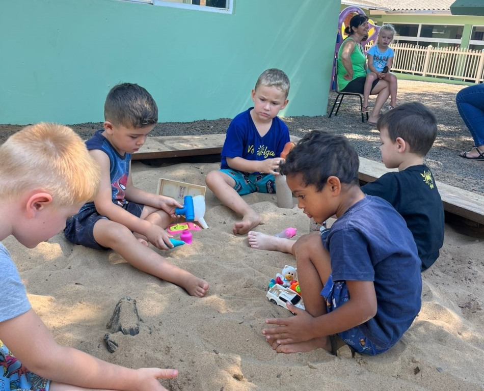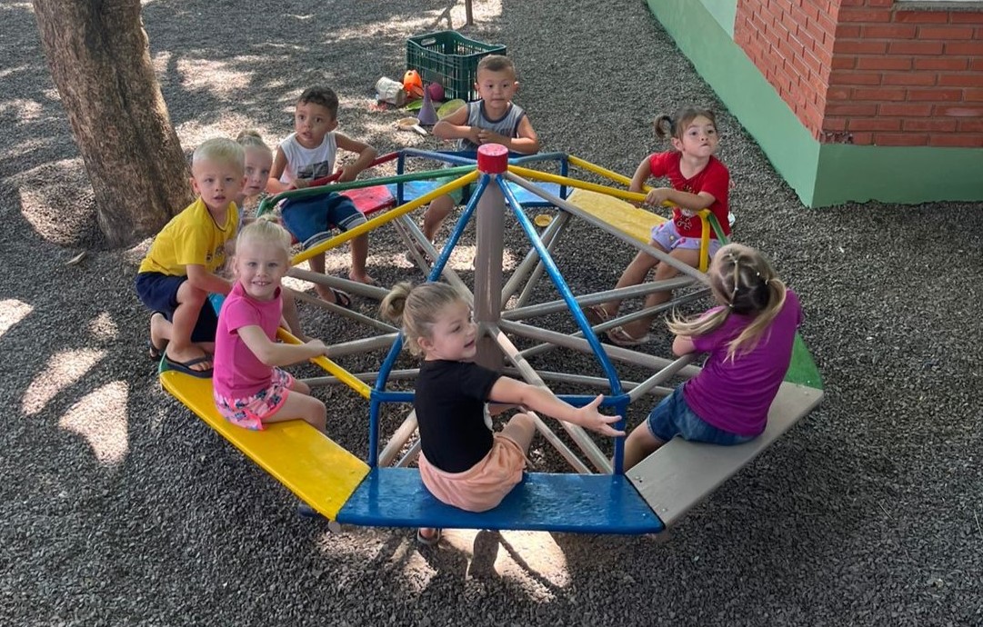Mato Leitão - Nesta semana, a Escola Municipal de Educação Infantil (Emei) Vó Olga iniciou atividades parcialmente, atendendo 75 crianças, cujos pais e mães estejam trabalhando e, comprovadamente, não têm onde deixar os filhos. Conforme a diretora pedagógica da Secretaria Municipal de Educação, Cultura e Desporto, Simone Silberschlag, cerca de 30 monitores, estagiários e funcionários estão garantindo o acolhimento durante o período de férias. “A proposta tem como foco a oferta de atividades recreativas, promovendo momentos de cuidado e convivência”, observa.