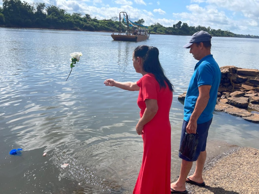 Luiz e Marlena Hertz acompanharam toda a parte religiosa da programação. Agricultores da localidade de Santa Mônica, desde o casamento, há mais de 30 anos, acompanham a chegada da santa, a procissão e a missa. Segundo a esposa, é o momento de pedir graças e também de agradecer pelas graças alcançadas, que, segundo ela, não são poucas. Normalmente envolve questões de saúde, diz. O pedido é jogado no rio, em um bilhetinho, acompanhado de flores como oferenda à padroeira.