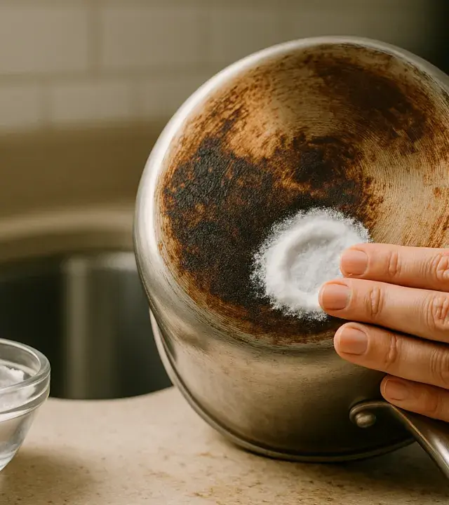 Quem nunca queimou uma panela tentando adiantar uma refeição? Neste caso, o bicarbonato é mais eficiente que muitos desengordurantes caros. Ele solta resíduos carbonizados, amolece a crosta e reduz drasticamente o esforço necessário para esfregar.