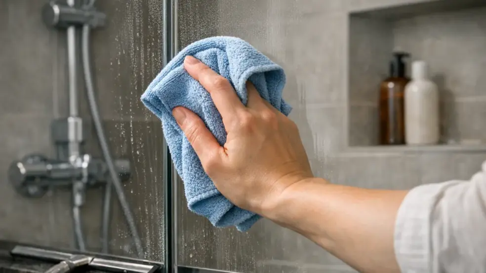 O pano seco de algodão ou a flanela comum não resolvem. O segredo real está no uso de um rodo de silicone com borda precisa, passado logo após o enxágue final. É essa etapa que retira toda a água acumulada, impedindo que os minerais deixem marcas. Pode parecer simples demais, mas quem adota essa prática nota a diferença já na primeira semana.