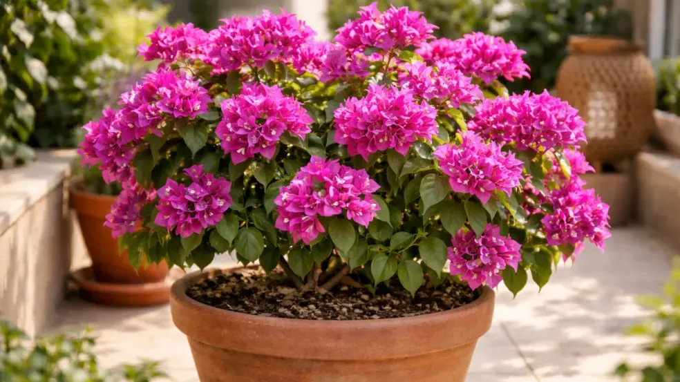 Quando o espaço engana, a buganvília responde do único jeito que sabe: ficando verde e silenciosa. Ajustar esse equilíbrio é o que transforma uma planta bonita em um espetáculo de cores.