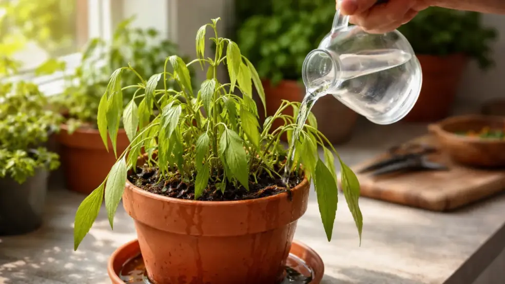 Quem mora em cidades do interior ou mantém hortas pequenas em vasos costuma repetir o mesmo gesto todos os dias, quase automático: olhar a planta, sentir o vaso ainda úmido e, mesmo assim, completar com mais água. O erro é sutil, porque a planta não morre rápido. Ela apenas cresce fraca, sem perfume intenso e com aparência cansada.