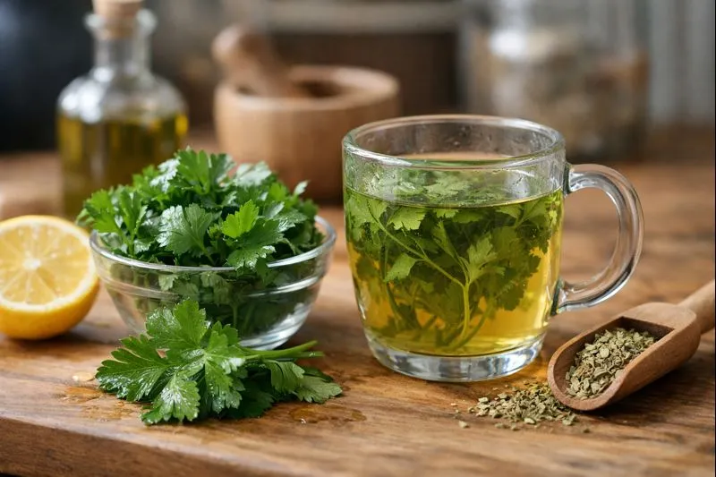 Muitas famílias têm adotado o chamado “chá de salsa” como alternativa natural. A receita é simples: basta ferver um punhado de folhas frescas (com ou sem os talos) em meio litro de água por 5 a 10 minutos. Depois de coar, consome-se a infusão ainda morna ao longo do dia, preferencialmente sem açúcar.