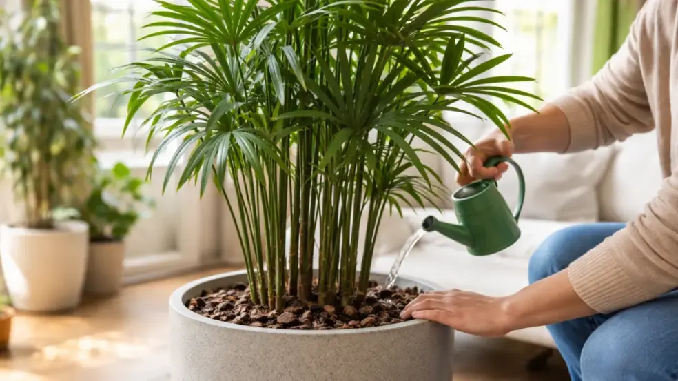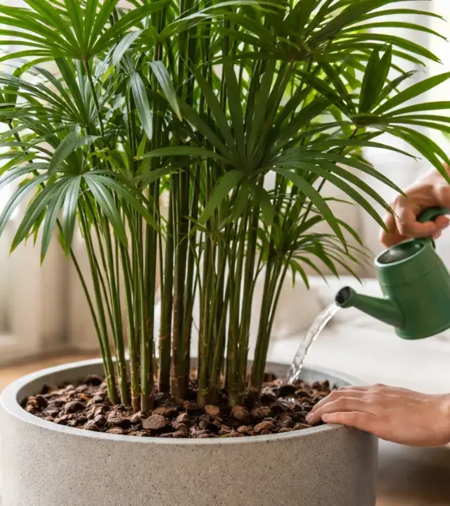 Na prática, o volume ideal do vaso para a palmeira ráfis depende da idade da planta e do seu estágio de desenvolvimento. Mas testes e observações mostram que vasos acima de 30 litros oferecem o ponto de virada. É quando a planta realmente “deslancha”, soltando novos brotos com mais frequência e ganhando volume nas folhagens.