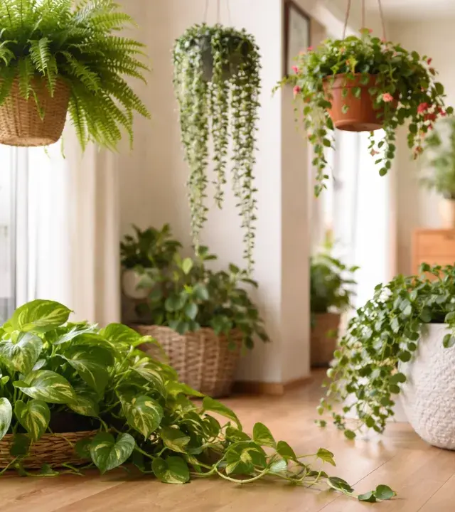 Além disso, plantas como a hera inglesa ou a columéia são muito sensíveis à falta de luminosidade direta — e o chão, muitas vezes, representa sombra demais. Quando ficam em vasos suspensos, elas ganham luz lateral e têm maior troca de ar com o ambiente, evitando fungos e atração de insetos. Por isso, pendurar essas espécies é mais do que uma escolha decorativa: é uma exigência fisiológica da planta.