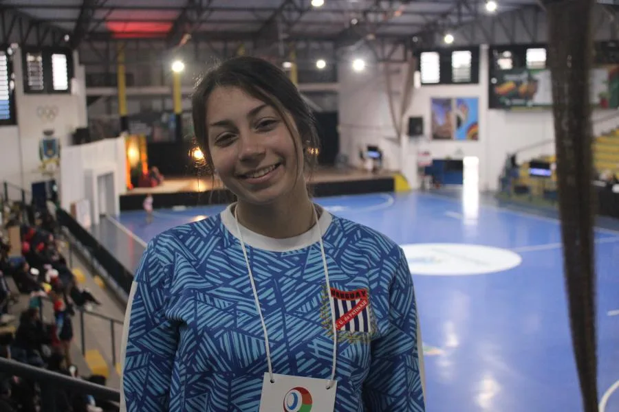 Este é o caso de Josefina López, 16 anos, que viajou quase 800 quilômetros desde a cidade de Maldonado, no sul do Uruguai. Ela conta que está na quinta edição do campeonato, que, em 2024, ocorreu em Balneário Camboríu, em Santa Catarina. “É uma experiência nova, tenho achado tudo muito bom. O ginásio é bonito”, relata.