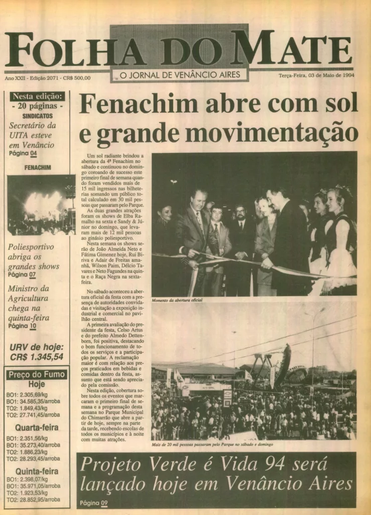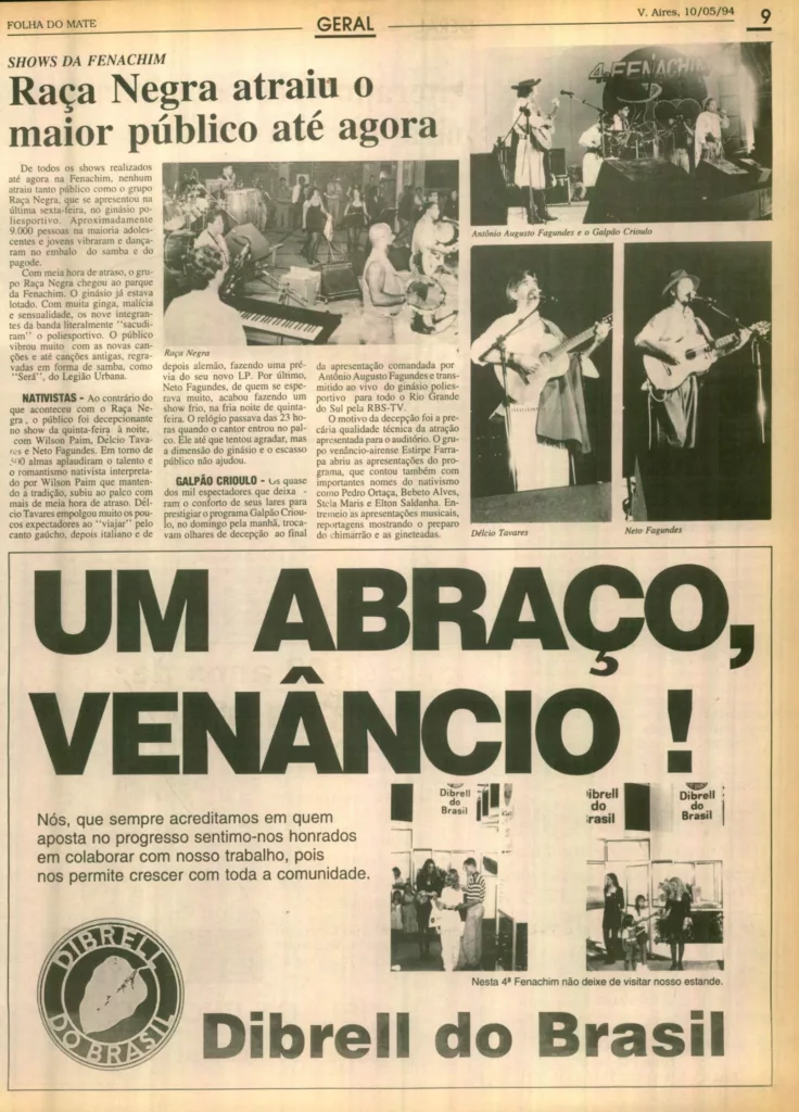 Na edição de número 2.073 da Folha do Mate, de 10 de maio de 1994, a organização anunciou público de mais de 9 mil pessoas no show do Raça Negra, o maior da festa. “Com muita ginga, malícia e sensualidade, os nove integrantes da banda literalmente sacudiram o Poliesportivo”, destacou matéria.