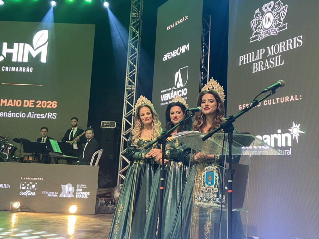 Venâncio Aires - Foram eleitas na noite deste sábado, 8, as soberanas do maior evento de Venâncio Aires: a Festa Nacional do Chimarrão (Fenachim), que será realizada de 30 de abril a 10 de maio de 2026. O trio é composto pela rainha Maiéle Aline dos Santos, de 29 anos, e princesas Fátima Tais Neitzel, de 28, e Taliana Beatriz da Silva, de 25.