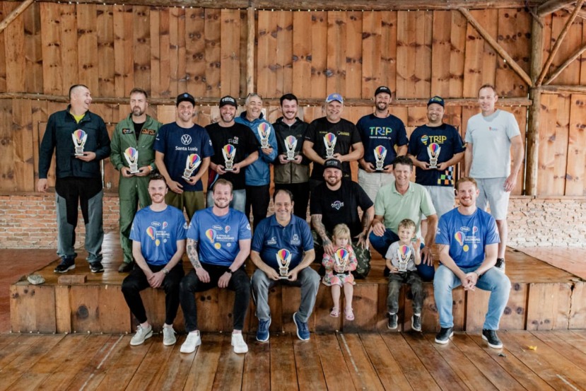 Rio Grande do Sul e Venâncio Aires - Durante almoço de confraternização neste domingo, 23, os 13 pilotos participantes da 6ª edição do Festival de Balonismo de Venâncio Aires receberam troféu de participação no evento. Em decorrência da instabilidade climática, em especial o vento, não houve competições oficiais no fim de semana, apenas voos contemplativos e com passageiros.
