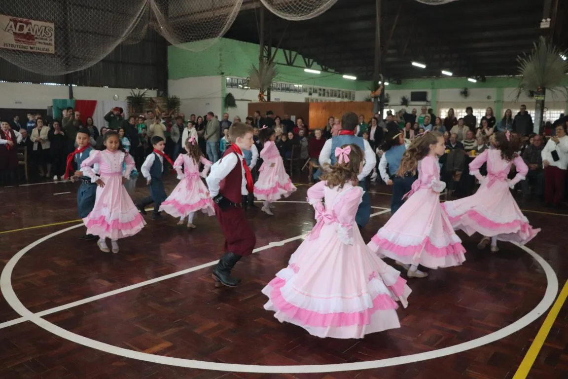 Após o almoço, o dia seguiu com apresentações das invernadas artísticas mirim e juvenil do CTG Querência da Mata e dos grupos de dança alemã, segundo com baile animado pela banda Magia Musical e domingueira, com a banda Nova Estação.