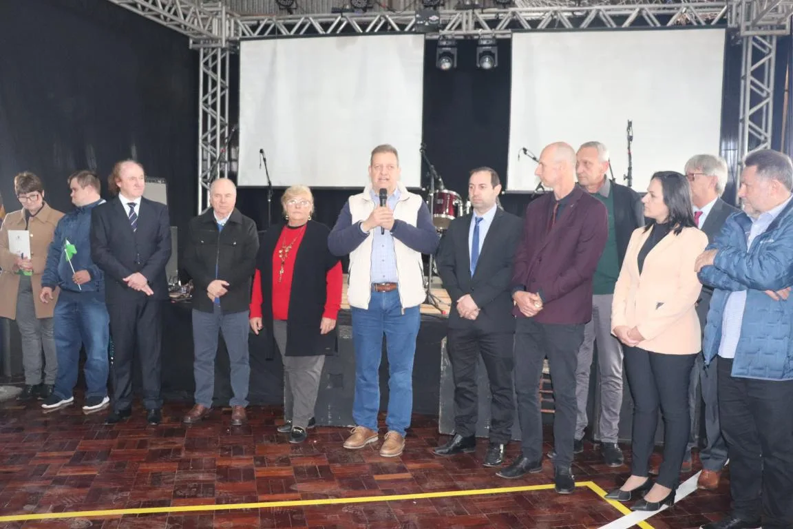 Representando o governador Eduardo Leite, o secretário estadual da Agricultura, Pecuária, Produção Sustentável e Irrigação, Edivilson Brum, fez importante anúncio durante a 28ª Festa Municipal do Colono Imigrante. Ele esteve na Vila Arroio Bonito, na manhã de domingo, 20, para prestigiar o evento. Depois de acompanhar o desfile temático, participou da solenidade oficial de abertura, quando anunciou o repasse de R$ 300 mil em horas-máquina para recuperação de estradas de Mato Leitão. “É um pedido do prefeito Flecha [Arly Stöhr], do vice Luciano Vargas e do secretário [de Agricultura] Devanir Heinen. Agora, a Prefeitura precisa elaborar um plano de trabalho para aplicação destes recursos”, disse.