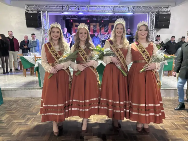 Bianca Ramona Jantsch, de 24 anos, foi eleita Garota Teuto-Brasileira 2025 na noite deste sábado, 31, em Linha Santana. Ao lado dela, Bárbara Gabrielly Burghardt, Bianca Iasmin Arenhardt Wickert e Júlia Grasiele Schubert foram escolhidas como princesas, formando a nova corte da 46ª Festa Municipal do Colono, que acontece nos dias 26 e 27 de julho, também na localidade.