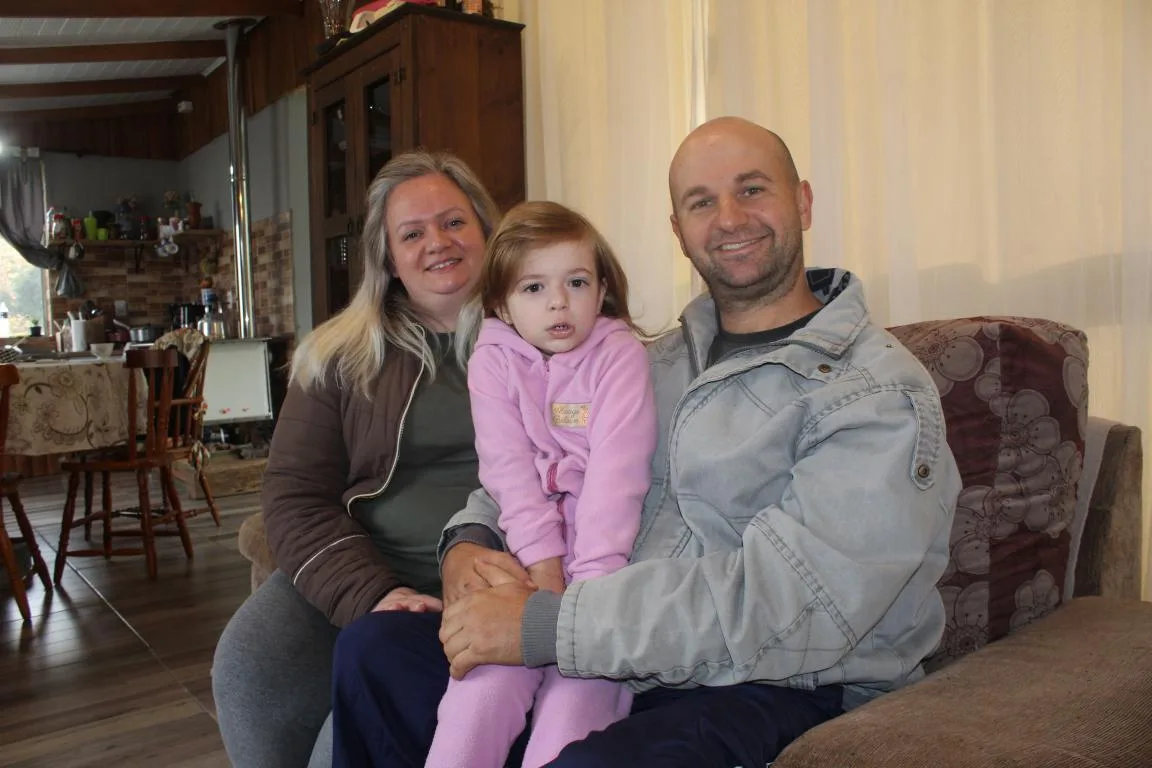 A propriedade de oito hectares pertencia a Ludvino e Nelsi Schwingel, que a transferiram aos herdeiros. Aposentados, hoje acompanham o trabalho do caçula Leopoldo, que é professor de música, mas decidiu retornar para o interior e empreender. Para isso, adquiriu as partes das três irmãs e começou a tocar o projeto ao lado da esposa Zândrea e da filha Olívia, de 3 anos.