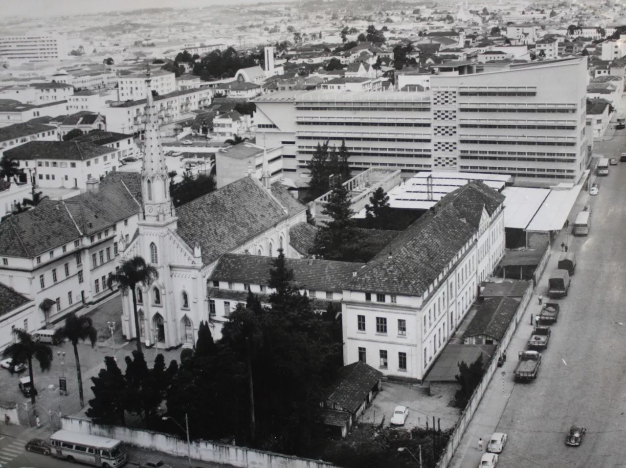 O Grupo Educacional Bom Jesus iniciou suas atividades em 1896, com a fundação da Escola Popular Alemã Católica, que em 1902 passou a ser administrada pelos frades franciscanos e foi transferida para a rua 24 de Maio, em Curitiba, no Paraná. Em 1909, foi fundada a Paróquia Bom Jesus dos Perdões, na praça Rui Barbosa (também na capital paranaense), e dois anos depois foi construída a sede da escola, ao lado da igreja, na rua Alferes Poli.