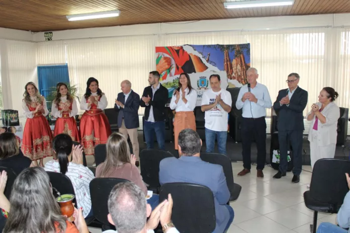 Participaram da abertura da assembleia do Corede-VRP, o prefeito Jarbas da Rosa; a vice-prefeita Izaura Landim; o presidente da Câmara, Eduardo Luft; o deputado estadual Airton Artus; o presidente da Fenachim, Vilmar de Oliveira; a vice-presidente do Corede, Carmen Lúcia de Lima Helfer, e as soberanas, a rainha Marina Jantsch e as princesas Larissa Maciel e Ana Flávia Dornelles. Artus lebrou que criação dos Coredes foi iniciativa do ex-governador Alceu de Deus Collares, há mais de 30 anos, segundo ele como uma evolução ao Orçamento Participativo. Também destacou papel estratégico do Conselho na construção de políticas públicas voltadas ao desenvolvimento regional. “Poucas iniciativas existem com o objetivo de formar recursos diretamente para a comunidade. Por isso, o Conselho ganha importância como canal de articulação e definição de prioridades reais para cada região”, afirmou.