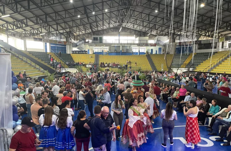 Poucas vezes a já batida frase “idade é apenas um número”, foi tão clara. Na tarde de quinta-feira, 8, foi realizado o Encontro da Melhor Idade no Ginásio Poliesportivo, durante a 17ª Festa Nacional do Chimarrão (Fenachim). O evento, promovido pelo Gabinete da Primeira-Dama, contou com mais de mil pessoas e representantes de 20 grupos da Melhor Idade do município. Ainda, participaram o grupo da Maturidade Ativa do Serviço Social do Comércio (Sesc), da Melhor Idade de Estrela, Lajeado, Passo do Sobrado, Teutônia, Santa Cruz do Sul e Cruzeiro do Sul.