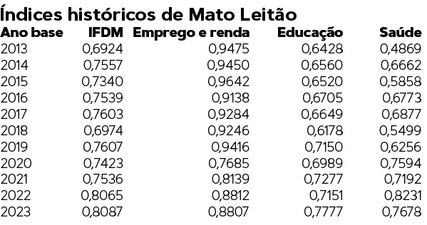 De lá para cá, Mato Leitão se recuperou, obtendo saldos positivos registrados pelo Caged:144 contratações em 2021, ano em que a Beira Rio retomou as atividades e o município recebeu autorização para implantação do Distrito Industrial; 180 em 2022, seis em 2023 e duas em 2024. Nos três primeiros meses de 2025, o saldo segue positivo: 13 contratações. Atualmente, a população estimada é de quase 5 mil habitantes.