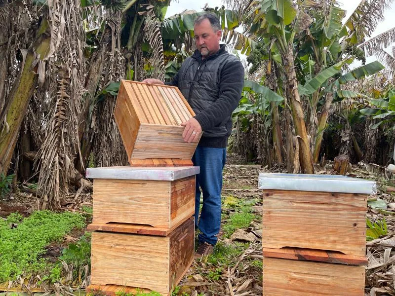 Entre os contemplados, está Sandro Volnir Dornelles, 48 anos, que começou a criar abelhas em 2024. “Venâncio teve uma perda muito grande em abelhas, assim como todo o Rio Grande do Sul. Sabemos que elas são muito importantes para a polinização”, avalia o agricultor, que cultiva hortaliças e frutas em Linha 17 de Junho. As 10 caixas que recebeu, ele estima que nos próximos dias já vão atrair abelhas. “Em 2025 o clima está colaborando e espero que a apicultura se recupere. No meu caso, a produção de mel é uma forma de seguir diversificando e agregar mais renda.”
