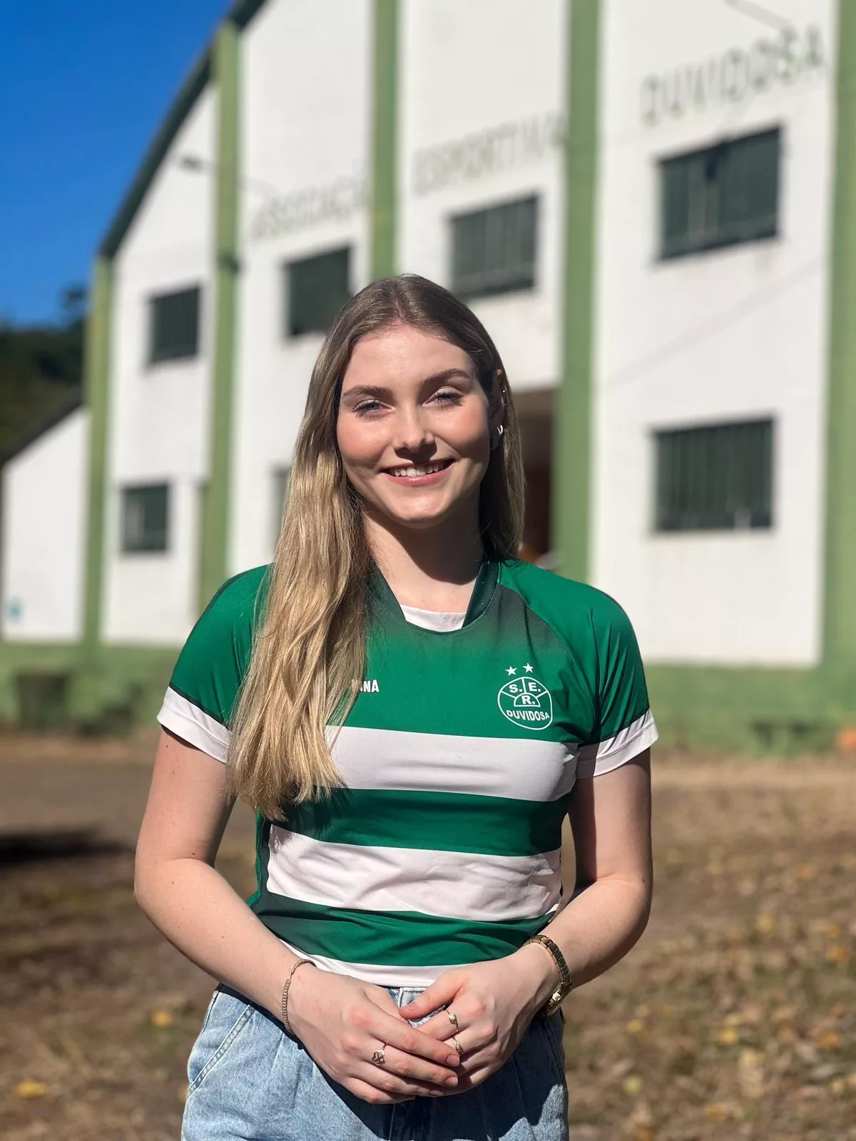 Bianca Iasmin Arenhardt Wickert, 18 anos, representa a Sociedade Esportiva e Recreativa Bom Humor, de Linha Cecília. Crescida no meio rural, ela ressalta o orgulho pelas origens. “Desejo ser a Garota Teuto-Brasileira para homenagear e representar com orgulho as raízes germânicas que fazem parte da história de Venâncio Aires. Sou do interior e cresci em meio à vida no campo, sempre ajudando meus pais nas atividades da agricultura, o que me fez valorizar ainda mais o esforço dos nossos colonos e a importância de manter vivas as nossas tradições. A Festa Municipal do Colono é uma celebração linda do trabalho, da cultura e da fé do nosso povo, e poder representar essa história seria uma honra imensa. Ser escolhida como Garota Teuto-Brasileira é assumir o compromisso de ser porta-voz da nossa cultura, incentivando as novas gerações a se orgulharem da herança que recebemos e a manterem vivas as tradições que nos tornam únicos”, ressalta.