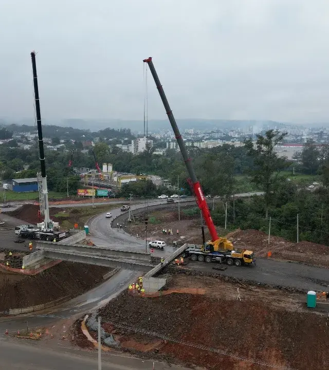 A Rota de Santa Maria concluiu, com sucesso, nesta quinta-feira, 5, operação de içamento de vigas no viaduto localizado no km 104 da RSC-287, no entroncamento com a BR-471, em Santa Cruz do Sul. Embora o içamento de vigas estivesse inicialmente prevista para ocorrer em dois dias, a operação foi realizada de forma eficiente e segura em apenas um, reduzindo os impactos no tráfego da região.