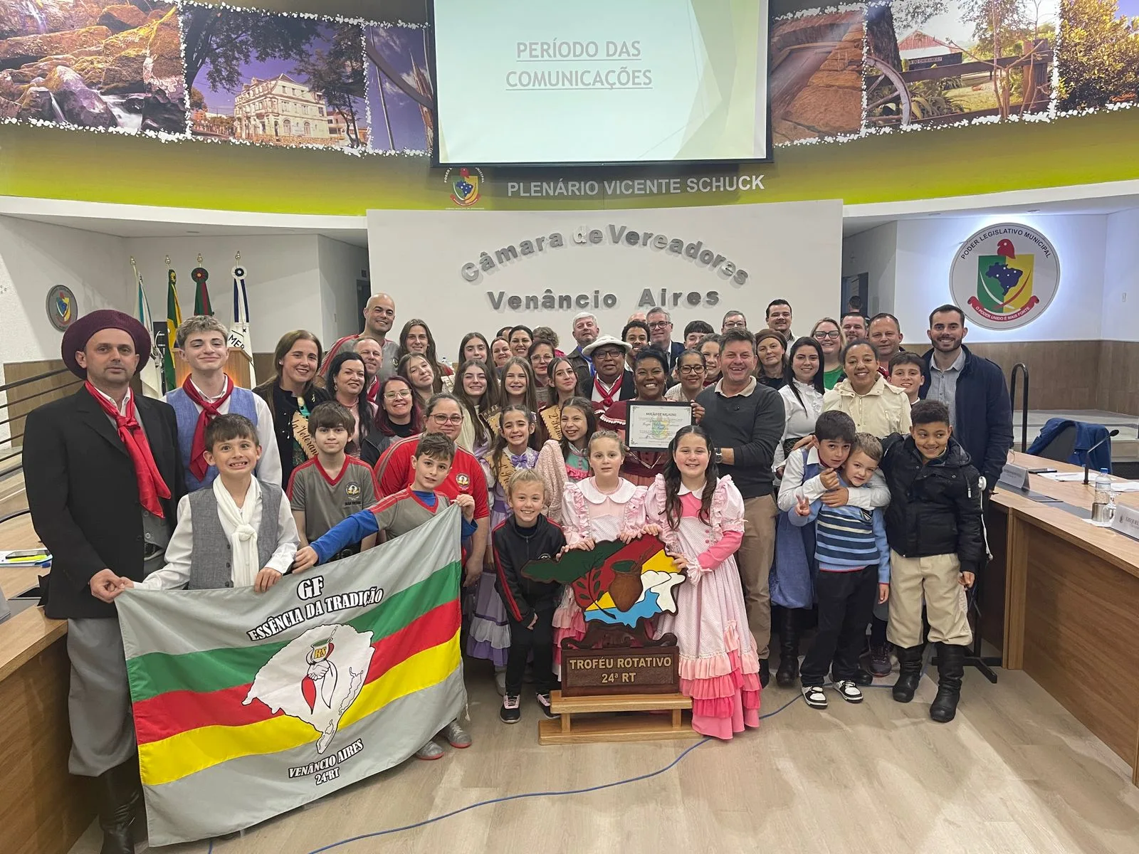 O GF Essência da Tradição também recebeu uma moção de aplauso, do vereador Elígio Weschenfelder, o Muchila (PSB) pela Conquista do Troféu Móvel da 24ª Região Tradicionalista (RT), em junho deste ano, na 34ª edição do Rodeio Regional.