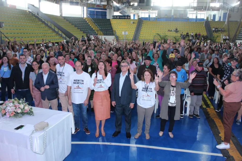 Para deixar o evento registrado, a coordenadora regional de Saúde, Mariluce Reis, solicitou aos integrantes da mesa que se posicionasse junto ao público, para uma foto geral. Também prestigiaram a abertura, a vice-prefeita Izaura Landim; o presidente da Câmara, Eduardo Luft; o secretário de Saúde, Alan da Rosa; o presidente da Fenachim, Vilmar de Oliveira, e a secretária Executiva da Festa, Deizimara de Souza.