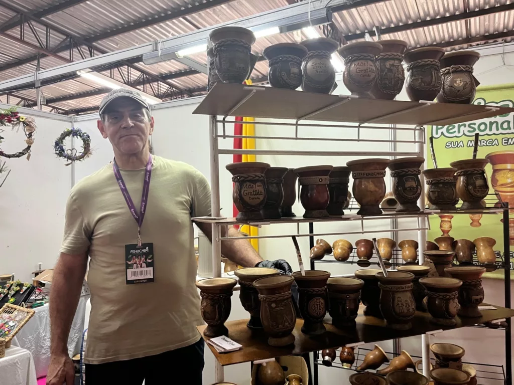 7 Quem quiser garantir uma cuia ou bomba novas, enfeites de chimarrão e itens decorativos, como capas para térmicas e os tapa ervas, os espaços do artesanato – onde estão Leocadia Richter e Edmilson Cananéa, por exemplo – e das exposições são ideais para as compras e até aquele presente especial para o Dia das Mães. No Pavilhão Agropecuário Leci Seibeineichler, na parte baixa do Parque do Chimarrão, Márcio Winck, de Frederico Westphalen, comercializa as cuias de produção própria.