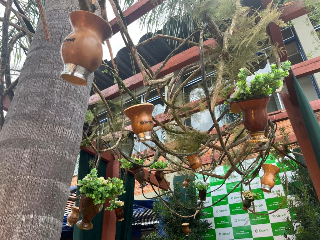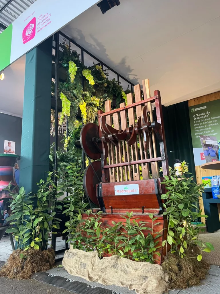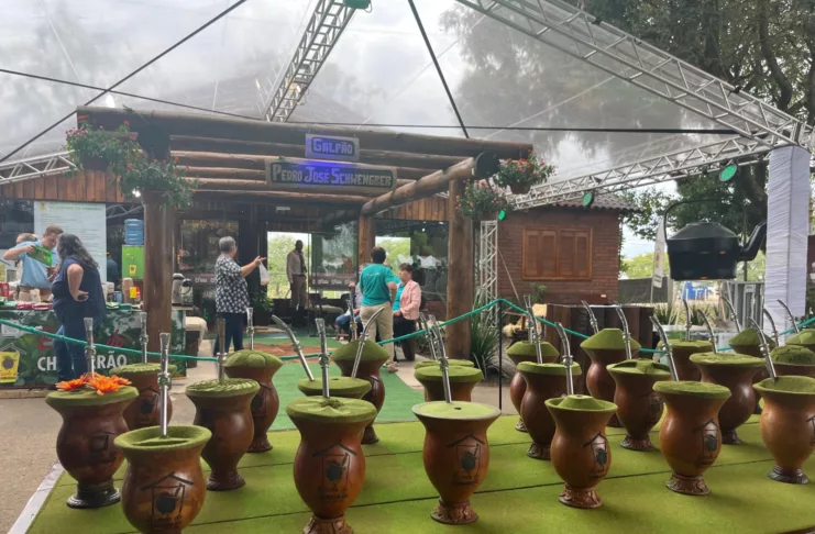 1 Na decoração, em diversos pontos do Parque Municipal do Chimarrão, cuias podem ser encontradas ornamentando a Fenachim. Na entrada, cuias penduradas formam um cenário ideal para fotos.