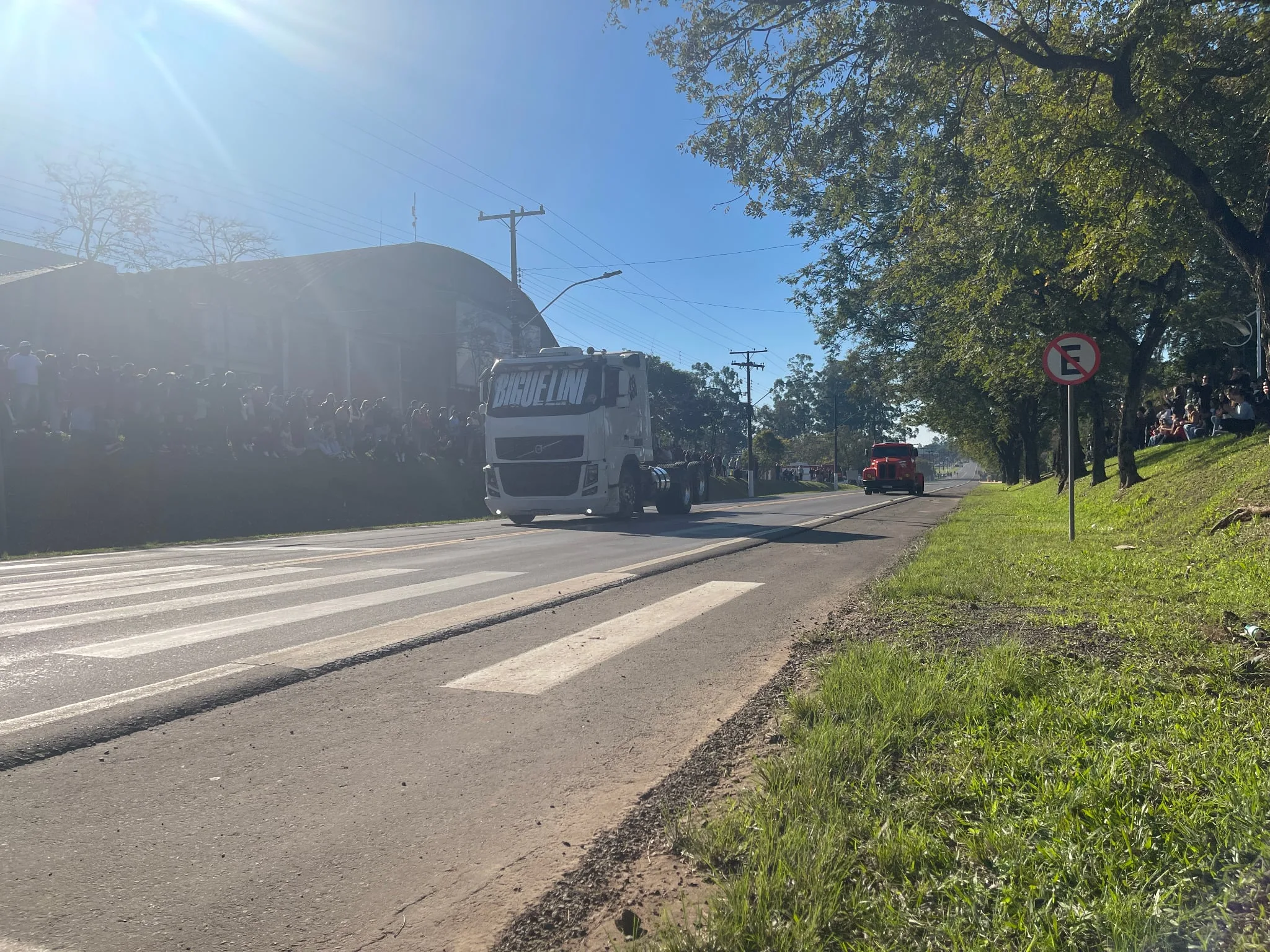 A ensolarada tarde de domingo, 20, contou com uma novidade na programação da Festa dos Motoristas. Um arrancadão de caminhões ‘aqueceu’ o Acesso Dona Leopoldina e levou bom público para as margens da via. Com oito participantes, o vencedor foi o venâncio-airense Davi Biguelini, que pilotou um caminhão Volvo.