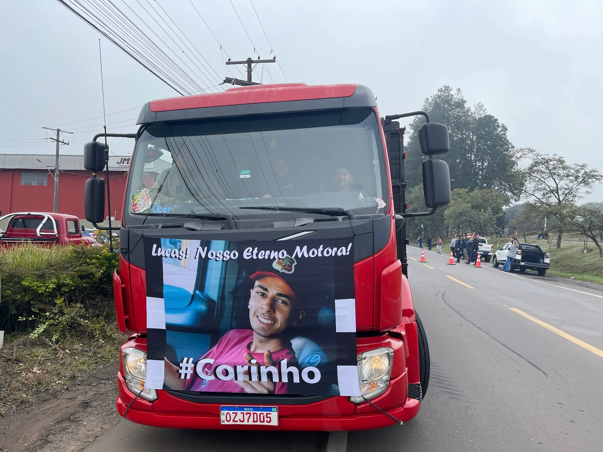 Segundo Faleiro, o jovem venâncio-airense também era motorista e veio a óbito na ERS-129, em Muçum, ao colidir com outro caminhão e ficar preso nas ferragens. “Falta um pedaço da gente até hoje. Era um guri de ouro, estamos aqui representando toda a família, o pai Ernie, a mãe Renata, a sobrinha Cecília, a namorada Andréia. Ele deixou um legado muito importante”, contou, emocionado. Na faixa, os dizeres “Lucas, nosso eterno motora”.