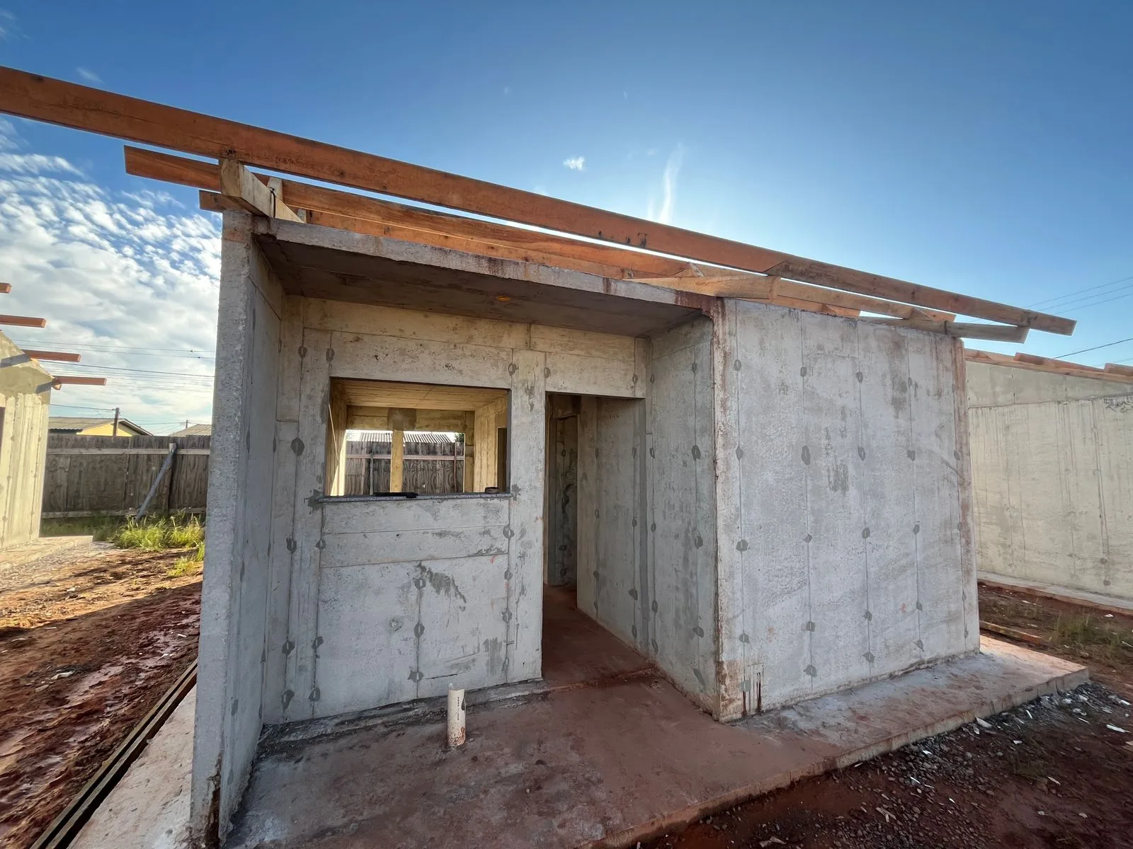 - Após esse processo de execução das paredes, o trabalho segue com a montagem dos telhados, instalação de pisos, pintura, colocação de portas, janelas e parte elétrica.