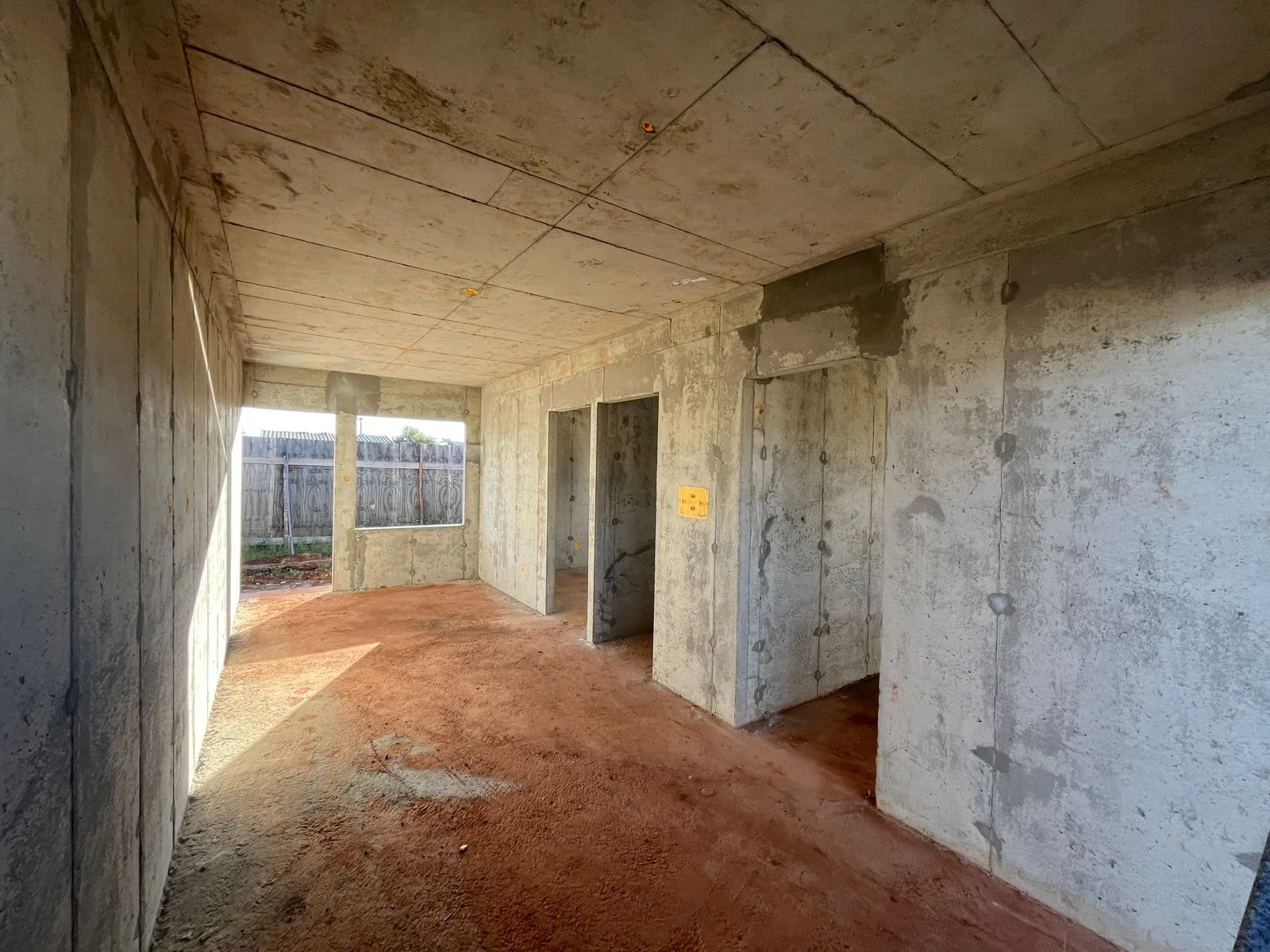 Inicialmente, a meta da empresa era concretar uma casa por dia. No entanto, as baixas temperaturas e a umidade elevada das últimas semanas dificultaram o processo de desforma, etapa na qual se retira a forma metálica das paredes após o endurecimento do concreto. “Com as temperaturas habituais seria possível, mas agora, por causa do frio e da chuva, estamos concretando uma casa a cada dois dias. Precisamos lutar contra o tempo para vencer essas batalhas”, comenta o engenheiro.