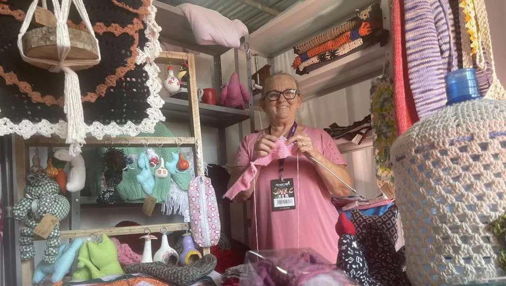Lúcia Elaine Santiago Silva, 63 anos, é uma delas. Integrante do Programa Municipal do Artesanato, a moradora do bairro Aviação confecciona peças de tricô e crochê, como tapetes, jogos de banheiro e xales, além de lembranças de Venâncio Aires, com pequenos porongos. “Temos itens a partir de R$ 5”, enfatiza.