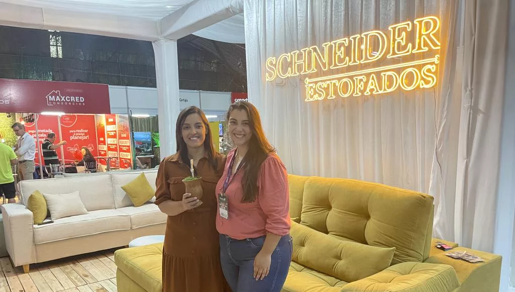 Com um estande localizado bem na entrada do Ginásio de Exposições, a Schneider Estofados aproveita o evento para divulgar a empresa, que tem 15 anos de história e trabalha com estofados sob medida e produtos personalizados. A avaliação da primeira etapa da Fenachim é muito positiva, conforme as sócias-proprietárias Camila e Aline Schneider. “Já teve mãe que saiu com uma poltrona de presente garantido”, conta Camila.