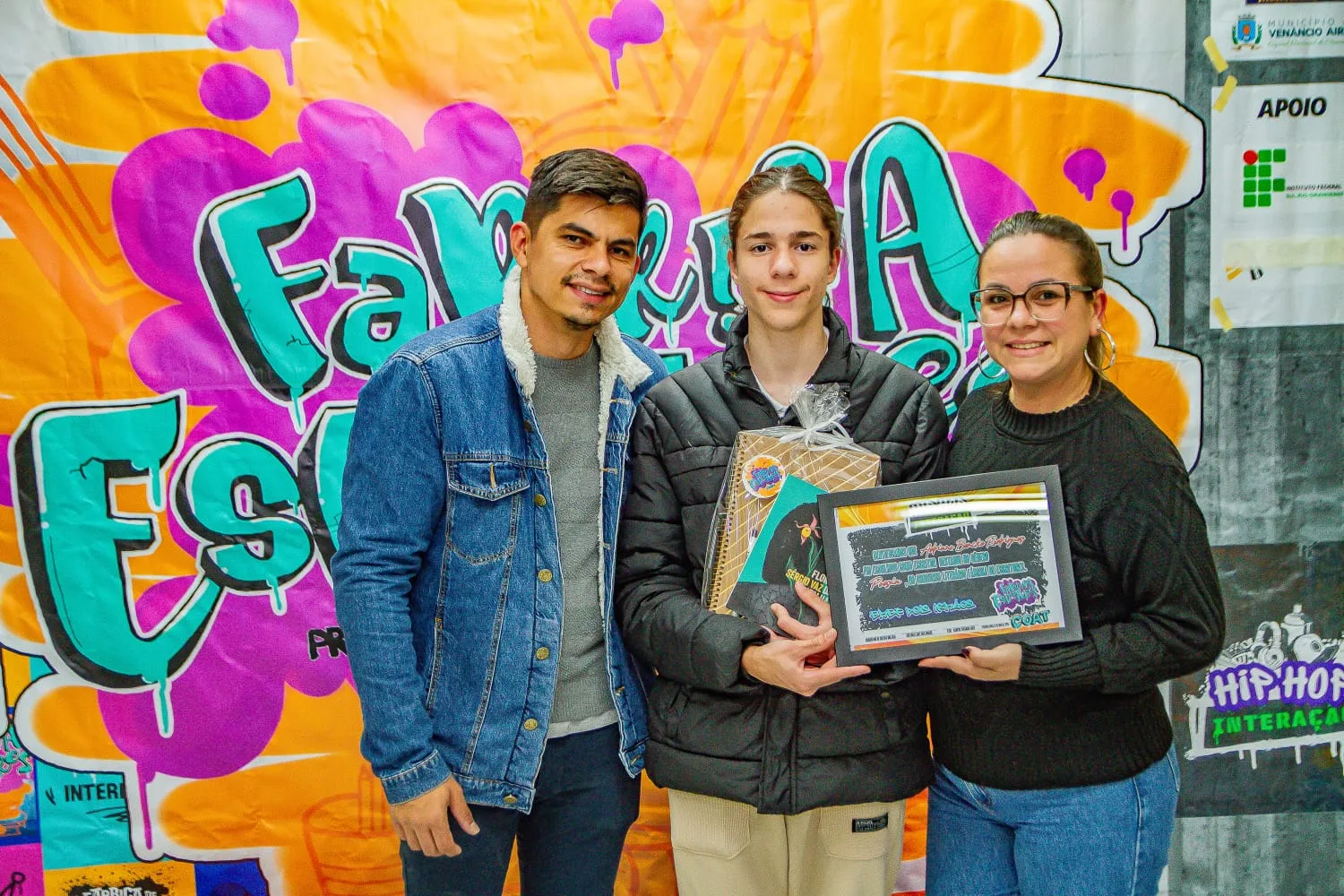 Além dos escritores, escolas e familiares, estiveram presentes na cerimônia de premiação o diretor do IFSul de Venâncio Aires, Geovane Griesang, representantes da Secretaria de Educação e Benildo Soares, ex-vereador do Republicanos que destinou os recursos para realização do projeto. O projeto, que integra o programa ‘Hip Hop Interação’ e conta com recursos de emenda impositiva do ex-vereador Benildo Soares (Republicanos) e apoio da Prefeitura de Venâncio Aires, consistiu na realização de oficinas de poesias e crônicas desenvolvidas pelos escritores Berma MC e Dan Poletti.