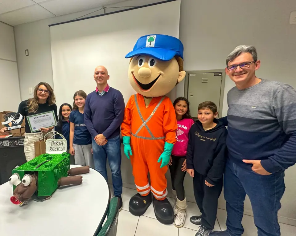 A ganhadora da Gincana Ambiental, Tarta Recicla, se junta ao Limpito, mascote oficial da Secretaria. A coordenação do concurso destacou o envolvimento das escolas e parabenizou todos os participantes pelo empenho e pela criatividade. O projeto reforça a importância de iniciativas educativas para a formação de uma geração mais consciente e comprometida com o meio ambiente.
