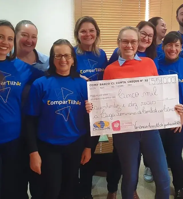 O ComparTilhAr – Time de Voluntários da CTA Continental Tobaccos, realizou uma doação de mais de R$ 5 mil para a Liga Feminina de Combate ao Câncer de Venâncio Aires, no dia 11 de junho. O valor de R$ 5.510,00 mil foi arrecadado durante o brechó solidário, que teve sua 11ª edição, realizado internamente, nos dias 2 e 3 de junho deste ano.