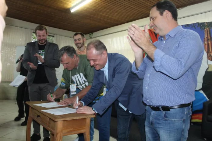 O Fórum Turismo nos Vales: As Raízes do Rio Grande do Sul trouxe profissionais do turismo, como guias, agentes e empreendedores para o auditório do Parque Municipal do Chimarrão, além de autoridades locais e servidores públicos municipais e estaduais que atuam no setor. O presidente da Amtuvales, Rafael Fontana, explica que as duas entidades já vêm atuando em parceria e que a diferença, a partir da assinatura do termo de cooperação, é que passam a agir em conjunto a elaboração de plano de ações e estruturações. Desta vez, mais focadas em questões como qualificação profissional, planejamento de eventos, elaboração de roteiros e projeção do potencial turístico da Região dos Vales para fora do Rio Grande do Sul. “Para isso, precisamos de mais força.” O colega da Aturvarp reforça a parceira, “mas, hoje, assinamos formalmente um termo de cooperação que vai nos permitir fazer muitos outros grandes eventos conjuntos”, complementou Djalmar Ernani Marquardt. Ele acredita que a união de esforços fará a diferença.