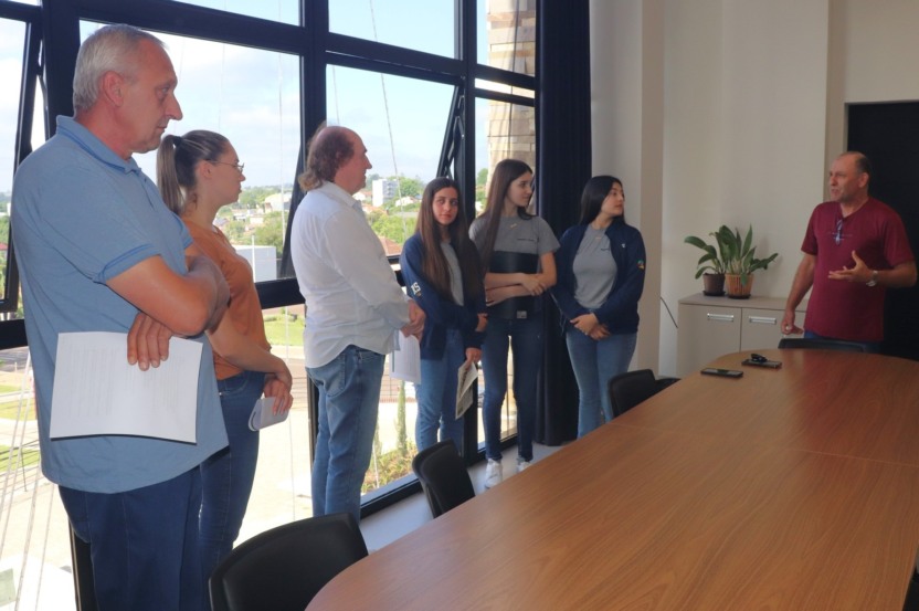 Mato Leitão - Proporcionar um ambiente mais puro e equilibrado no perímetro urbano. Com esse objetivo, alunas do Colégio Estadual Poncho Verde elaboraram um projeto de arborização, denominado de ‘Raízes do Futuro’. Representado as turmas 91 e 92, o grupo de estudantes esteve no Centro Administrativo, na quinta-feira, 12, para apresentar detalhes do trabalho que também fez parte da Mostra Pedagógica Municipal.