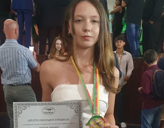A cerimônia premiou os melhores atletas dos estaduais, destaques nacional, sul-americano e mundial no atletismo. Com apoio da Prefeitura, Mayane compareceu na premiação acompanhada pelo professor Jacson Richter e de familiares. Em outubro, a jovem representou o Rio Grande do Sul e Mato Leitão nos Jogos Escolares Brasileiros (Jebs) 2025, em Uberlândia (Minas Gerais).