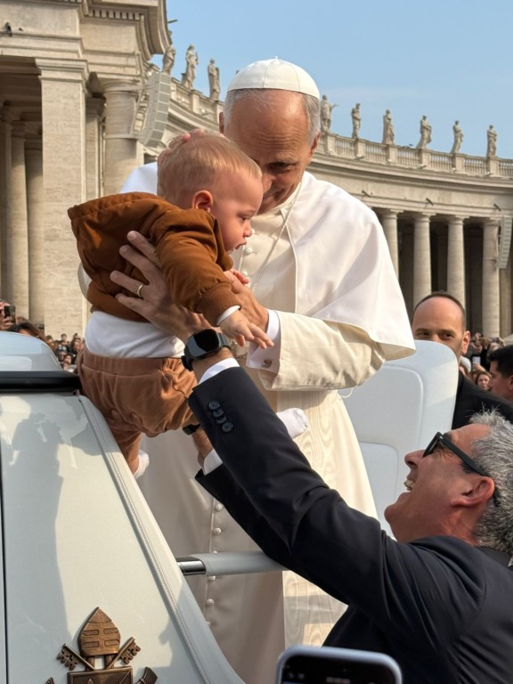 A manhã desta quarta-feira, 15 de outubro de 2025, será inesquecível para a família Landim. Durante audiência papal no Vaticano, o pequeno Miguel Dalmolin Landim, de apenas 9 meses, recebeu a bênção do Papa Leão XIV. O bebê é filho do casal Paulo César Landim Filho e Isadora Dalmolin Landim, que está em viagem pela Itália. Paulo César é venâncio-airense, filho mais novo da vice-prefeita do município, Izaura Landim. Ele é médico e reside em Capão da Canoa, cidade onde nasceu Miguel.