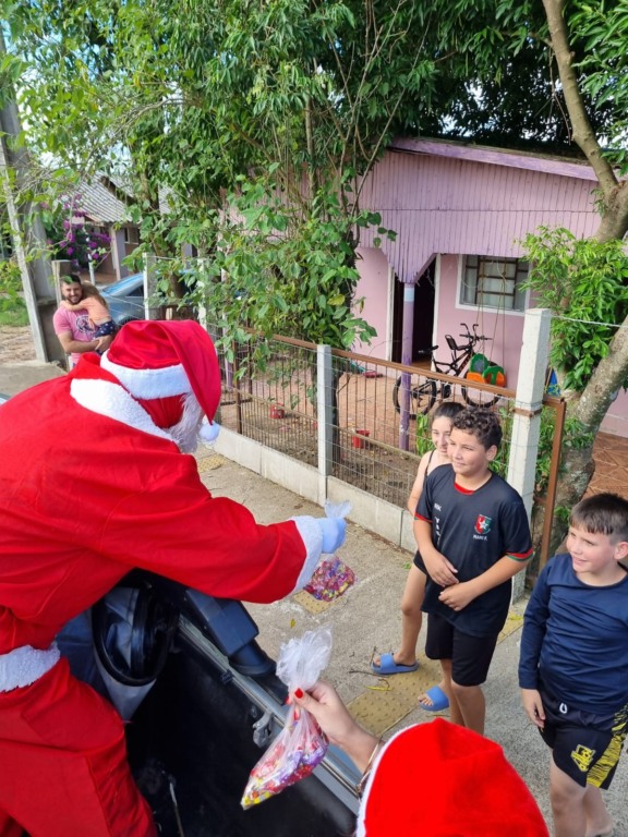 Assim, com brinquedos e balas, o grupo percorre todo o Centro e interior de Vale Verde. Segundo Natália, são 428 crianças de até 12 anos presenteadas. “Este ano, para as crianças, todas as 428, vão ser brinquedos e balas. E ainda 10 famílias irão ser beneficiadas com cestas básicas.”
