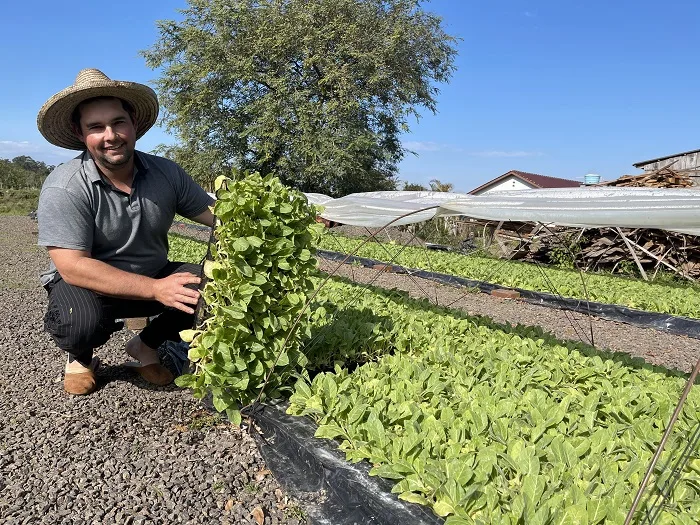 Como o inverno tem sido considerado dentro do ‘padrão’ gaúcho, com dias seguidos de temperaturas mais baixas e formação de geada, o agricultor revela que precisou dar uma atenção ainda maior para as mudas. Em noites muito frias, colocou uma lona a mais sobre os canteiros e manteve o nível da água – onde ficam as bandejas – mais alto, para evitar o congelamento das raízes.