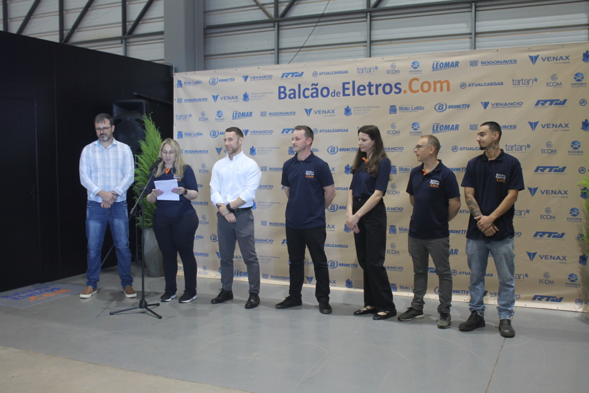 Mato Leitão - Na manhã desta terça-feira, 11, ocorreu inauguração do Balcão de Eletros no Distrito Industrial de Mato Leitão. Os sócios do empreendimento, Fabiana Bergamaschi, Walter Bergamaschi Júnior e Jonas Weis, receberam autoridades do município, representantes de empresas vizinhas e demais convidados para oficializar as atividades que se iniciaram em outubro, no prédio de 2 mil metros quadrados onde funciona o Centro de Distribuição. Também prestigiou o ato, o diretor-presidente da Venax Eletrodomésticos, Walter Bergamaschi, aproveitando seu aniversário de 79 anos. “É um momento de extrema felicidade, de estarmos nessa coincidência, nessa convivência e saber do propósito que temos de fazer o crescimento e desenvolvimento”.