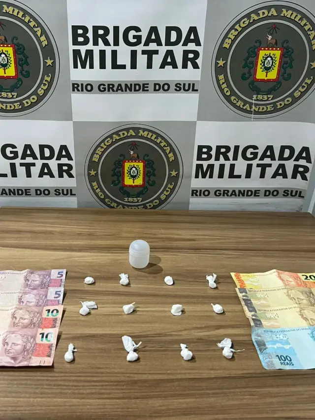 Ao ser abordado, os policiais encontraram no bolso direito da calça do indivíduo diversas porções de cocaína, além de uma quantia em dinheiro. Diante dos fatos, foi dada voz de prisão em flagrante ao suspeito.