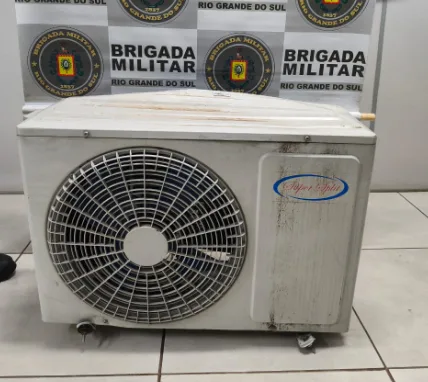 As prisões aconteceram quando os policiais flagraram o mais novo em frente ao prédio, carregando o aparelho, de 12 mil BTUs. Em seguida, viram o outro indivíduo pulando a cerca do INSS e ambos foram abordados, identificados e revistados.