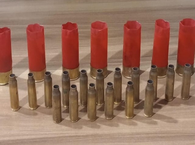 Lá, os policiais militares encontraram duas pessoas feridas sem gravidade, em razão de disparos de armas de fogo. Nas proximidades de onde se deu a ocorrência, foram apreendidos sete cartuchos calibre 12 e 17 estojos calibre 5.56, todos deflagrados.