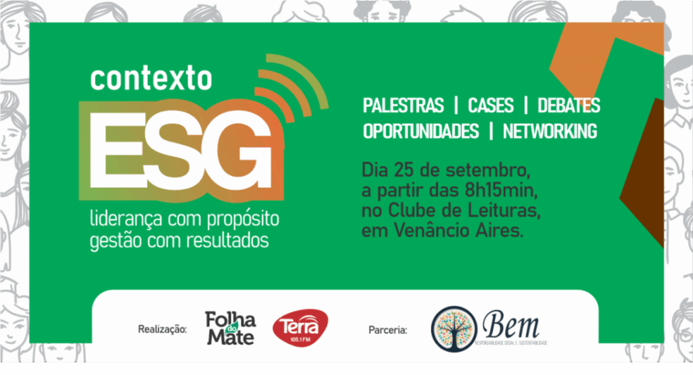 Uma verdadeira imersão sobre ESG (sigla em inglês para Environmental, Social and Governance – Ambiental, Social e Governança) com cases reais de empresas de Venâncio Aires e região dos Vales. É o que promete a primeira edição do evento Contexto ESG, que ocorre na próxima quinta-feira, 25.