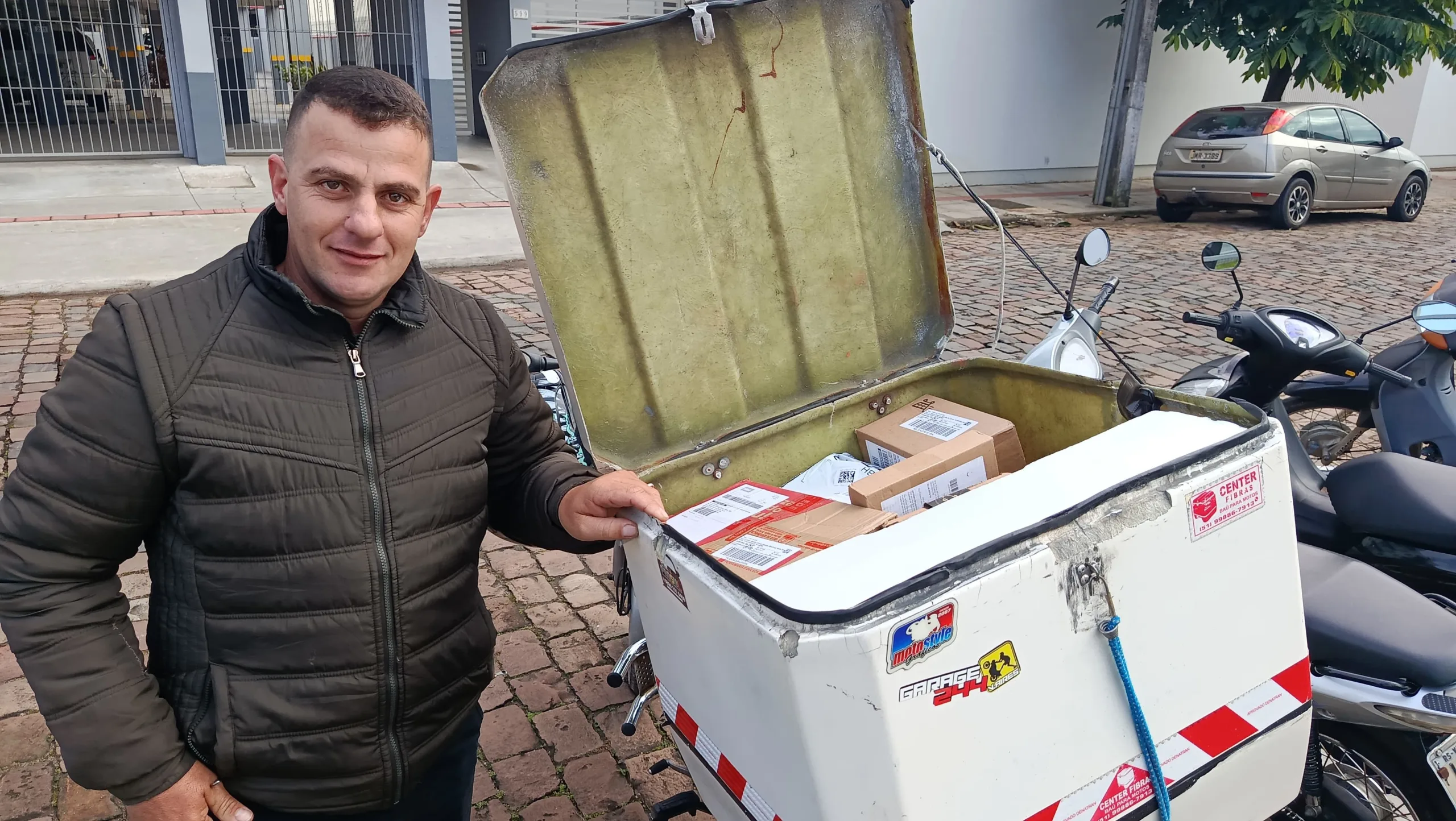 Júnior Maciel Dias, 31 anos, morador do bairro Battisti, também aposta nas entregas do Mercado Livre como trabalho. Além de trabalhar na cidade, ele distribui remessas em municípios da região, como Estrela e Lajeado. Com o próprio carro, realiza entregas conforme a demanda: cerca de 35 pacotes por viagem.