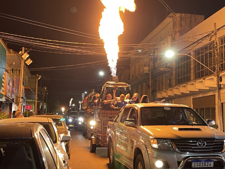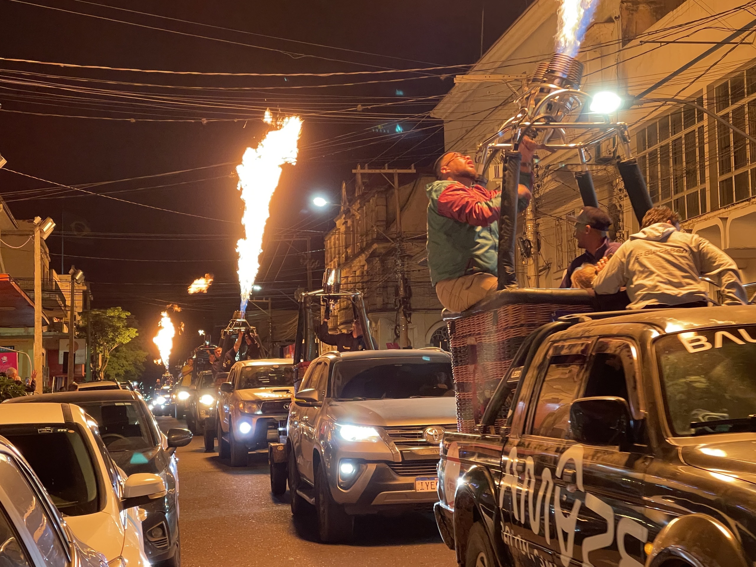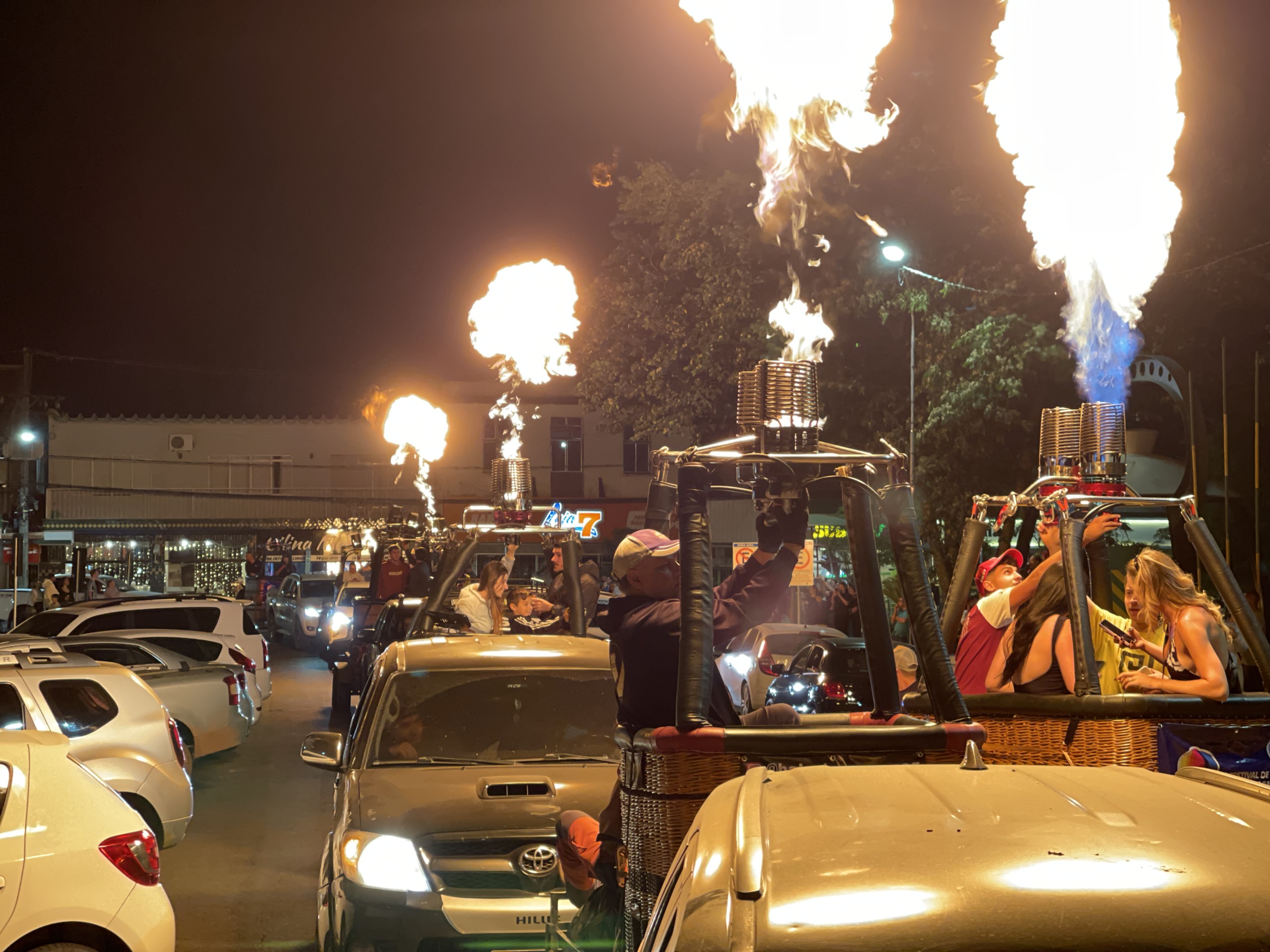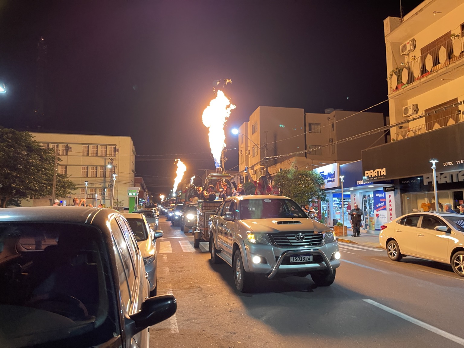 Venâncio Aires - A carreata Ruas de Fogo proporcionou uma programação muito especial para a comunidade de Venâncio Aires, na noite deste sábado, 22. Integrando o 6º Festival de Balonismo, o grupo de balonistas saiu em frente à rodoviária, no bairro Cruzeiro, e passou pelas principais ruas da área urbana, entre Voluntários da Pátria, Osvaldo Aranha e Avenida Ruperti Filho. O público pôde prestigiar um show de luzes, com o acendimento dos maçaricos dos balões.